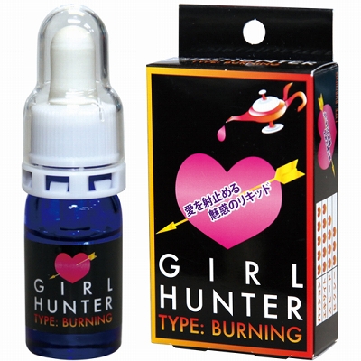 一緒に盛り上げる為の女性用リキッド「ガールハンター (バーニング)」。パッケージサイズは11.5×6.0×2.5cm、内容量は5mlとなっています。