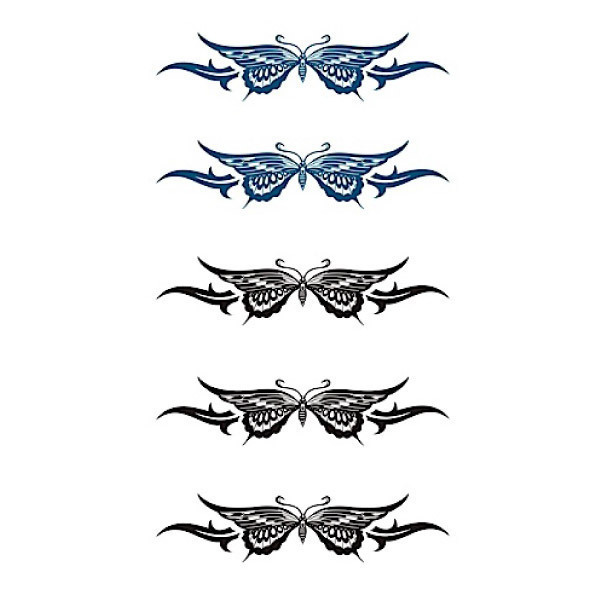 ブルーと黒の蝶が美しいタトゥーシール「腕輪・トライバル蝶」。