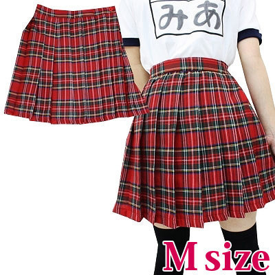 制服コスプレの定番アイテム!キュートな赤チェック柄プリーツスカート。